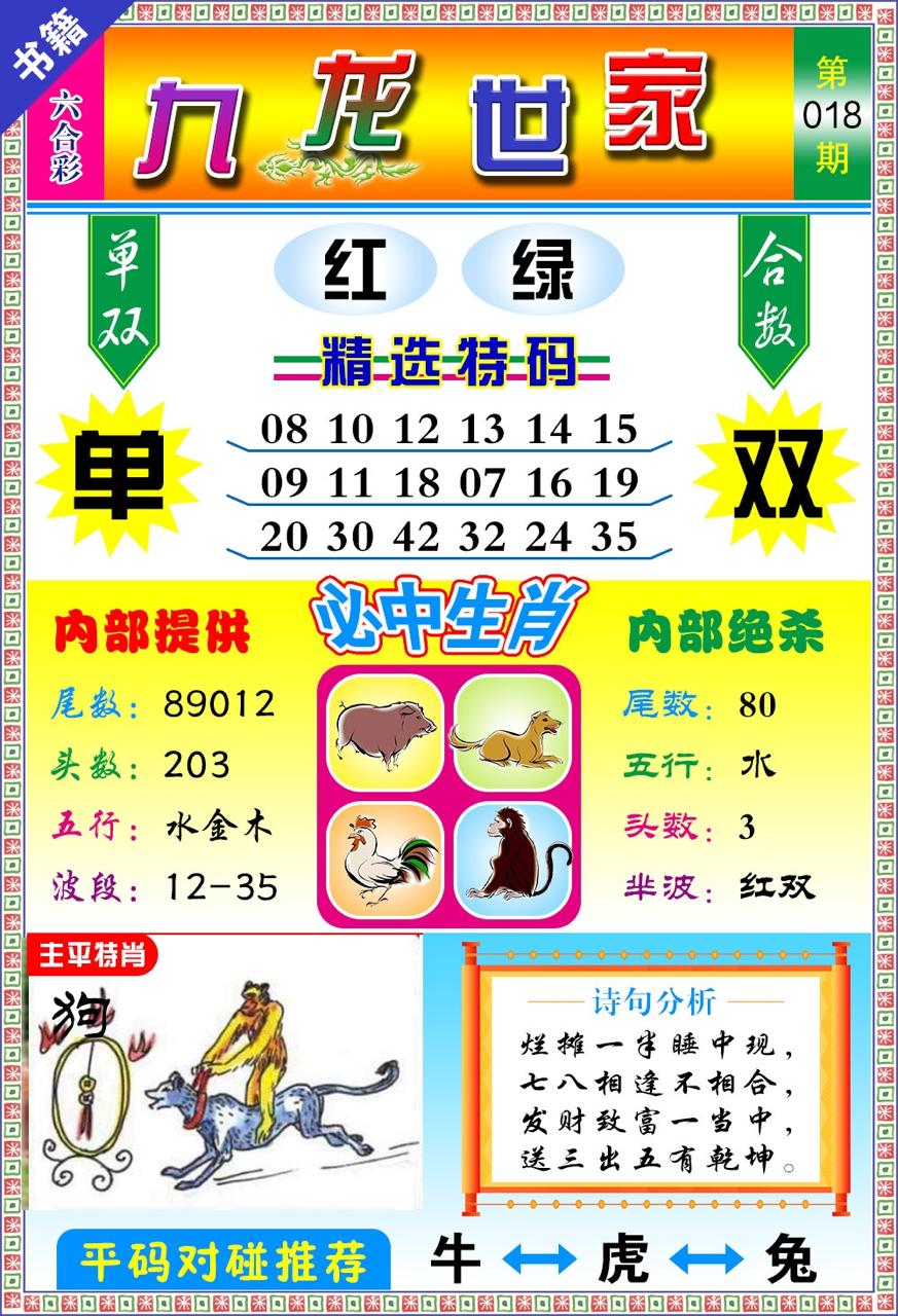 | 018期:⑨肖 | 蛇鼠羊龙狗马兔虎鸡 | ||||||||