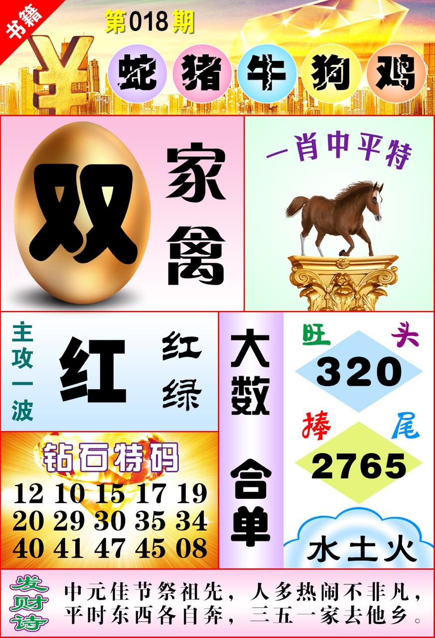 | 018期:⑦肖 | 蛇鼠羊龙狗马兔 | ||||||||